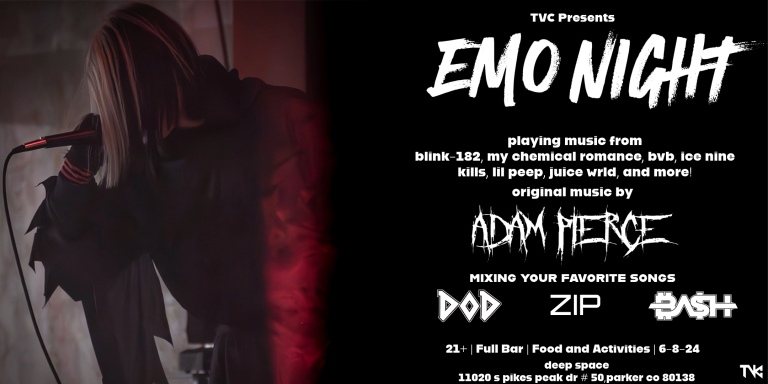 This event is designed to foster a night never to be forgotten! This night will not only have throw back sets from eras such as the 2000’s emo/punk scene, the 2014 scene/emo scene, and the emo/sad boi rap scene but also a live performace from TVC member Adam Pierce! With compliments from interactive activities, drinking games, and the full bar with food! This will be a night talked about for years! Bring your friends and buy tickets now before they are all gone!